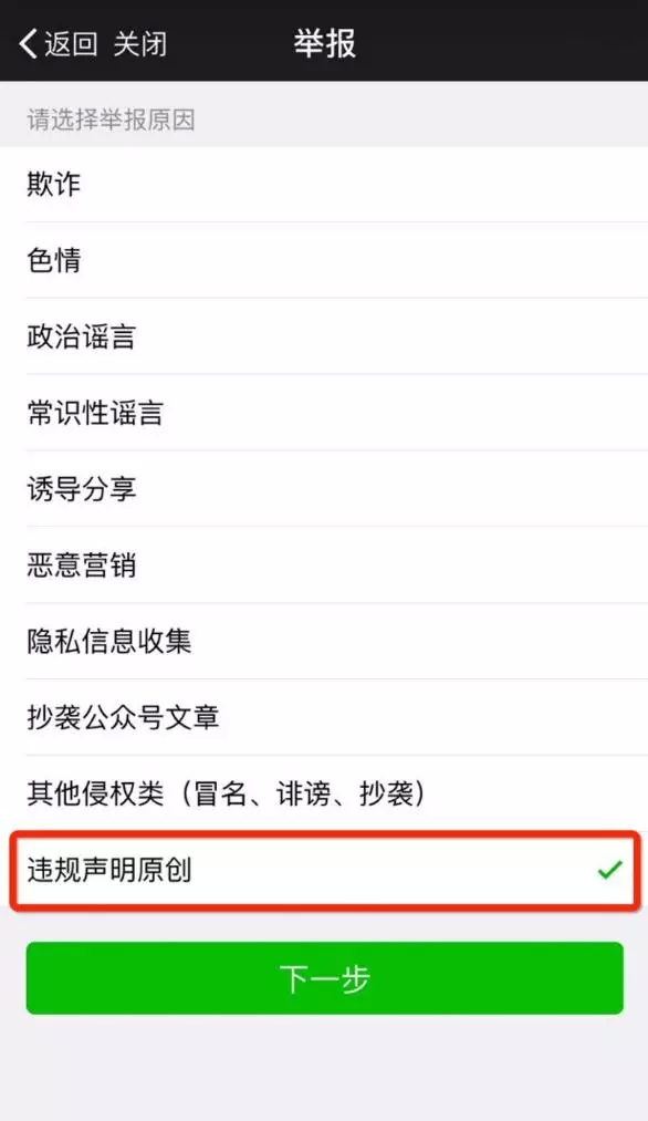 ▲图22 微信处理用户手机端举报违规声明原创的文章数量