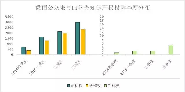 ▲图12公众帐号的各类知识产权投诉的季度分布图