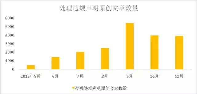 另一方面,微信用户通过手机端对违规声明原创的文章进行的举报,微信公众平台也都认真核实处理。从2015年5月至2015年11月七个月间,微信共处理用户手机端的该类举报1.9万余篇,有效遏制了部分公众帐号不当使用原创声明功能的行为。