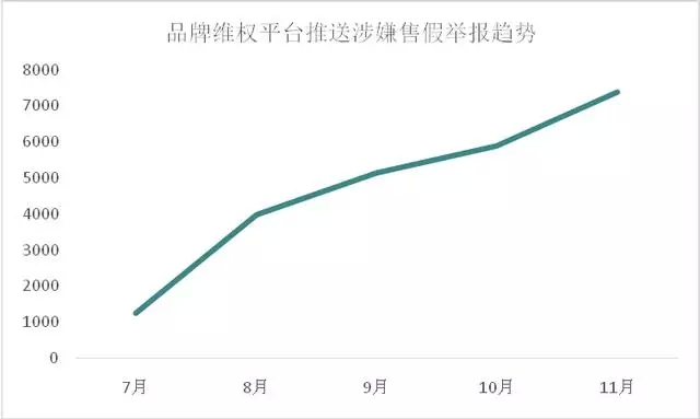 ▲图23微信品牌维权平台推送涉嫌售假举报趋势图