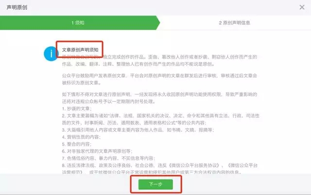 一旦经平台巡查、著作权人或者用户举报发现公众帐号滥用原创声明功能,如将法律法规、国家机关的决议、决定、命令申请原创等情形,微信将阶梯性暂停该帐号原创声明功能的使用;情节严重的,还将对违规帐号按照平台规范进行处理。