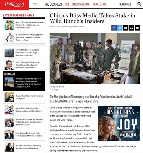 更多 >>???????上图为Hollywood Reporter对此事的报道?