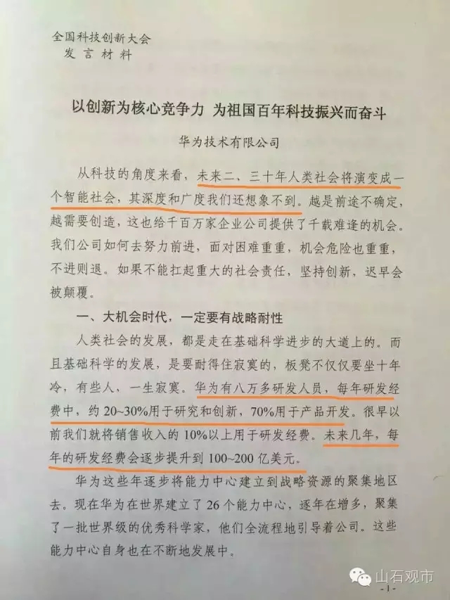 打破这一困境,走出前途茫茫,任正非给出的药方是:坚持科技创新,追求重大创新。