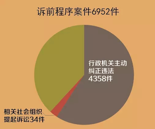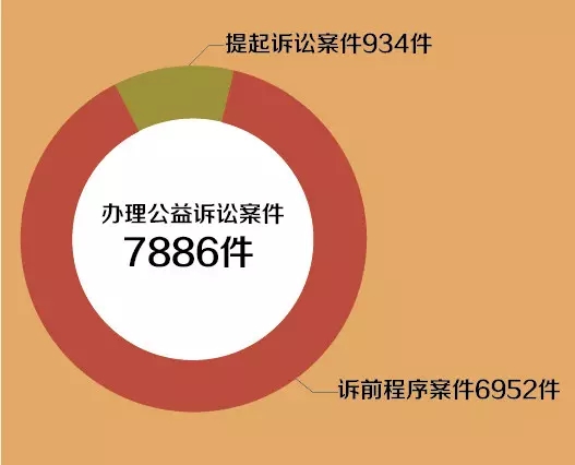 截至2017年5月,各试点地区检察机关共办理公益诉讼案件7886件,其中诉前程序案件6952件、提起诉讼案件934件。诉前程序案件中,行政机关主动纠正违法4358件,相关社会组织提起诉讼34件。提起诉讼案件中,人民法院判决结案222件,全部支持检察机关的诉讼请求。