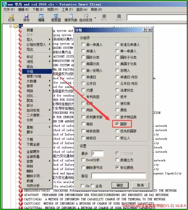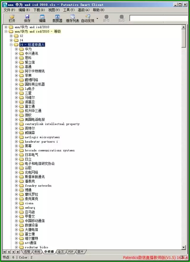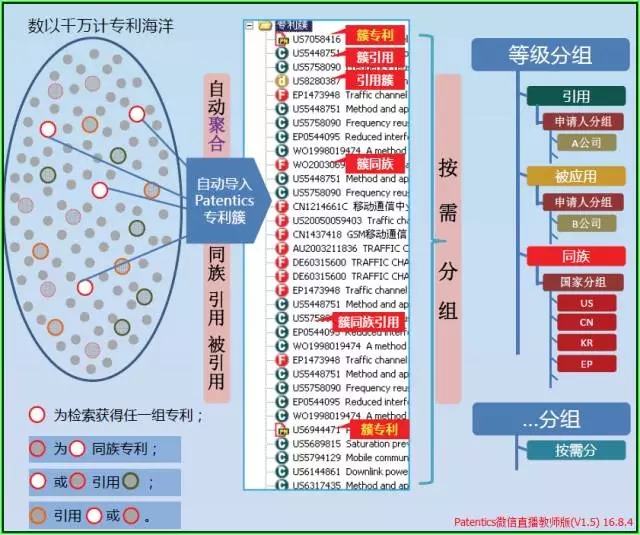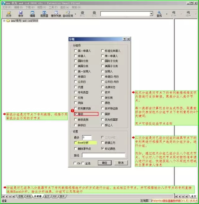 总结:专利簇可以将一篇或者多篇专利的引用、被引用、同族等成结构性导入到分类器,再利用分类器的中等级分组获得引用、被引用、同族专利集合,配合智能分组获得不同的分析数据。