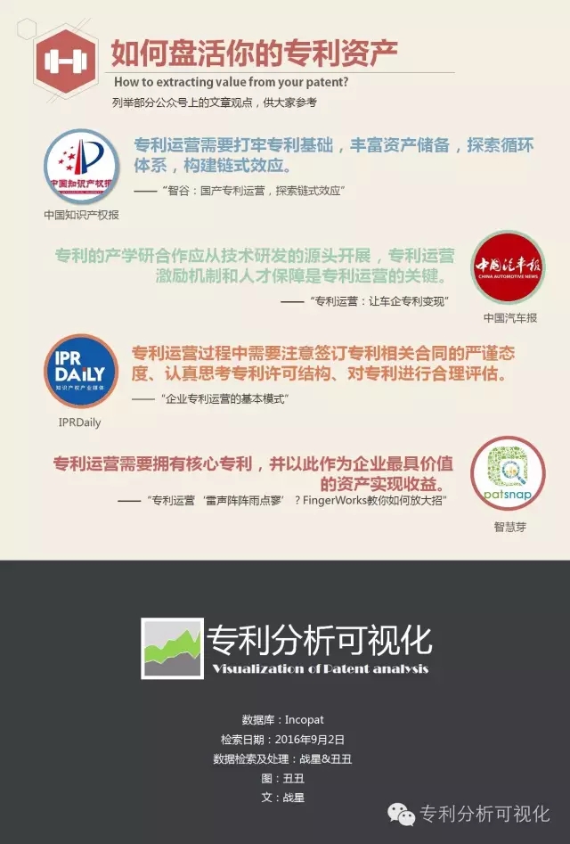 分析完中国市场专利资产,各位真爱粉肯定想知道如何去盘活自己的专利。在此,小编们收集了部分其他公众号上的文章观点供大家参考。?