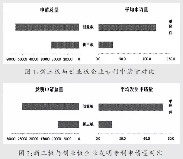 因此,无论身处怎样的市场环境,创新才是企业发展的基石。那么,新三板企业相比创业板企业而言,其创新能力到底如何?专利作为创新成果的体现,已经越来越受到人们的重视,因此笔者以专利为视角,选取新三板的做市企业与创业板企业做一对比分析(本文数据均来源于中国专利检索与服务系统)。