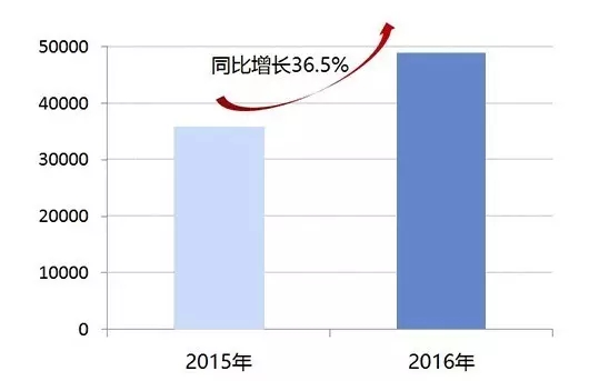 2016年,全国专利行政执法办案总量48,916件,同比增长36.5%。