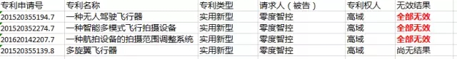 实际上,G 君的担心也得到了事实的验证,上面提到的目前公开的高域起诉零度智控的 4 个实用新型专利的无效结果中,其中有 3 个已经被复审委全部无效,还有一个结果尚未确定。