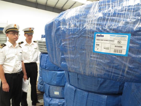 杭州某公司向宁波海关申报出口一批导轨、管夹等五金配件,申报品牌为“ekoline”,价值超过一百万元人民币。宁波海关隶属北仑海关查验关员在对这批货物查验时发现,货物外包装上除了品牌、规格等信息,还印制了含“UL”字样的标识。此外,所有货物上同样蚀刻有“UL”字样。海关关员在海关?;け赴赶低持胁檠嗣拦鶸L安全实验所的授权情况,发现并无该公司的许可信息。