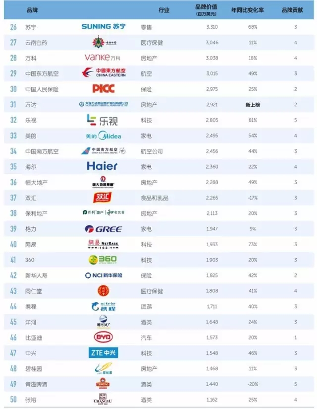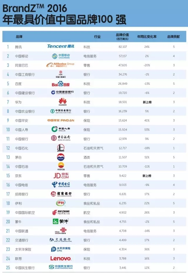 2016年全球最具价值品牌100强出炉,15个中国自主品牌榜上有名