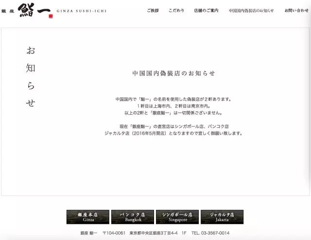 网友爆料称,日本东京名店“鮨一”在日文官网发布了一条通知,表示在中国国内开的“鮨一”是“偽裝店”——