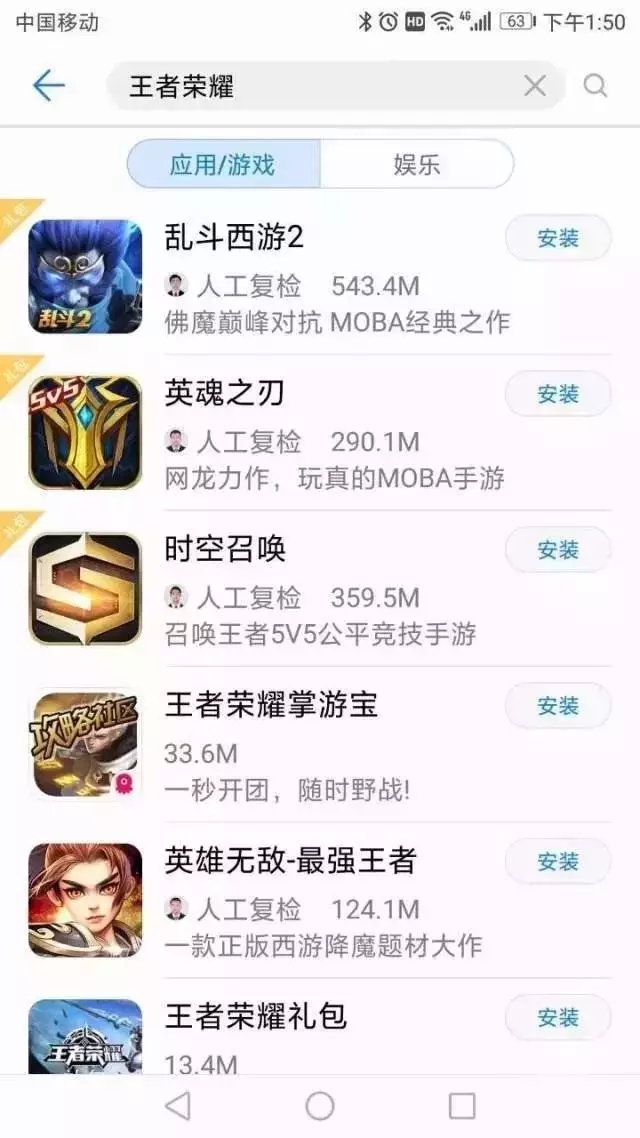 值得一提的是,不仅是王者荣耀,游戏茶馆记者搜索天天酷跑、天天爱消除、英雄战歌等腾讯系列游戏,发现均遭到屏蔽。而且在安装时会提示软件风险。这场知识产权引发的冲突,你怎么看?