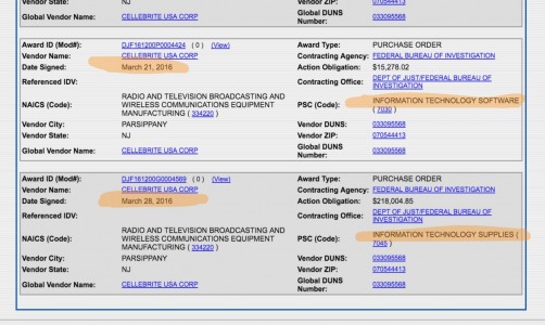此时,推特上有人发现,FBI在宣布能够在不需要苹果公司的帮助下解锁的iPhone的几天前,即3月21日(美国时间),Cellebrite和FBI刚刚签了一份价值约15,000 美元的合同,合同服务内容是信息技术软件,3月28日(美国时间)又有一份新合同,价值高达到了21.8万美元,服务内容是信息技术供给,这是两者之间价格最高的一份合同。