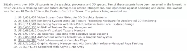 而令人不解的是,2006年和苹果公司和解之后,Creative Technology一直沉寂了8年。直到2014年3月,Creative Technology的子公司ZiiLabs在德州东区法院发起了专利诉讼,这次的倒霉蛋除了苹果公司,还有苹果的「完美CP」韩国的三星电子。不过ZiiLabs使用的武器不是「ZEN」专利,而是其2002年收购英国显示厂商3Dlabs时获得的图像处理相关的10项专利。