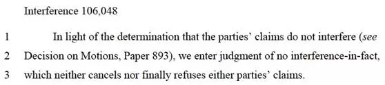 很明显,二者看起来似乎并没有太大的交集。所以,最终得到的判决结果也就在情理之中了。在短短的几行判决书中,专利法庭认为“no interference in fact”,简单的解读就是:加州大学伯克利分校和Broad Institute的发现并没有交集,此事到此为止。判决结果的赢家绝对是Broad Institute,可以继续持有在人类和动植物等真核细胞中使用CRISPR技术的相关专利。