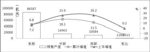 规模以上电子信息制造业中,中、西部地区分别实现销售产值14963亿元和10584亿元,同比增长18.1%和11.5%,增速高于平均水平9.4和2.8个百分点,在全国所占总比重达到22.6%,比上年提高1.5个百分点;中、西部地区软件业务收入增长19.3%和16.6%,比上年下降1.5和4.6个百分点。东部和东北地区电子信息制造业分别完成销售产值86587亿元和1160亿元,同比增长8.7%和下降13%,增速低于全国平均水平1.5和21.7个百分点;东部和东北地区软件业增速分别为17.2%和10.7%。