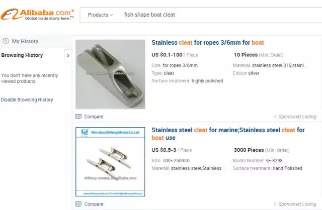 有哪个小伙伴知道这个英文词组所代表的意思?反正Global君是不知道的,因为Alibaba的这个诉讼到网上查了许久,才知道在国内应该叫羊角或缆绳栓,是游艇用的一个小部件,用来固定缆绳。国内游艇并不像国外那么普及,所以大部分人对它并不熟悉。
