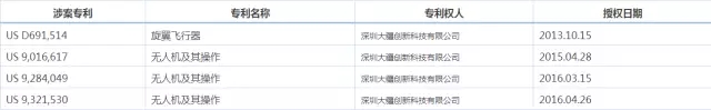 依据上表可知,此次涉案的4项专利均是由原告深圳大疆为专利权人(申请人)于近年获得的专利。其中,涉案的外观专利在德国的同族专利曾在德国涉及过侵权诉讼,并获得德国法庭的许可,拿到了对被告道通的临时禁令。