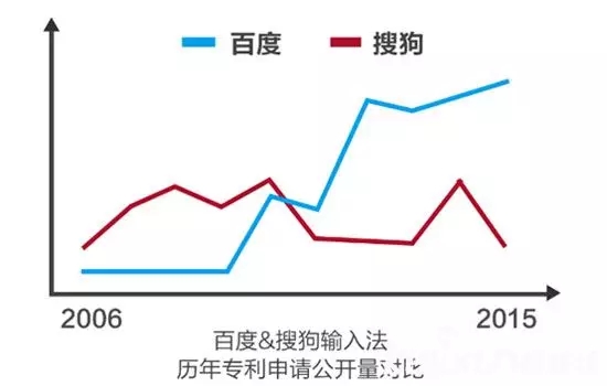 至今,搜狗2015年起诉百度输入法产品侵犯其专利权的17项专利中,除去尚未公布结果的,被宣告无效或部分无效的专利已经超过半数。这一局面这也意味着,在该案后续的法院审理过程当中,百度已在基本面上占据主动。这让人不禁想重新审视搜狗公司专利申请的质量,作为输入法市场的先行者,早年搜狗积累了大量发明专利,但近年来专利公开申请的数量开始明显少于竞争对手。