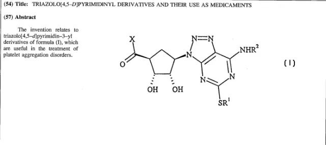 近日,国家知识产权局专利复审委员会公布第33591号专利无效审查决定,宣告第99815926.3号“新的三唑并(4,5-D)嘧啶化合物”发明专利无效。该件专利为药物“替格瑞洛”(商品名:倍林达)的化合物专利,专利权人为阿斯利康(瑞典)有限公司(下称阿斯利康公司)。据悉,阿斯利康公司研发的“替格瑞洛”是继阿司匹林、氯吡格雷之后,急性冠脉综合征领域又一重磅药物,用于治疗治疗心肌梗死、血栓形成中风、暂时性局部缺血发作、外周血管疾病和稳定的和不稳定的心绞痛,2012 年11月在中国获批。