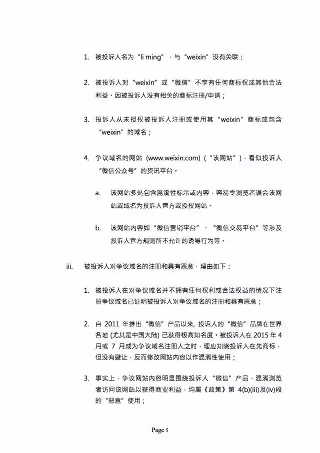 更多 >>?????? 双拼域名weixin.com在最近一起争议中被仲裁归属腾讯,根据流出的仲裁文件照片显示,这一消息可以判定为真。目前,尚不能确认这份来自香港的仲裁文件是否具有完备的法律效力。