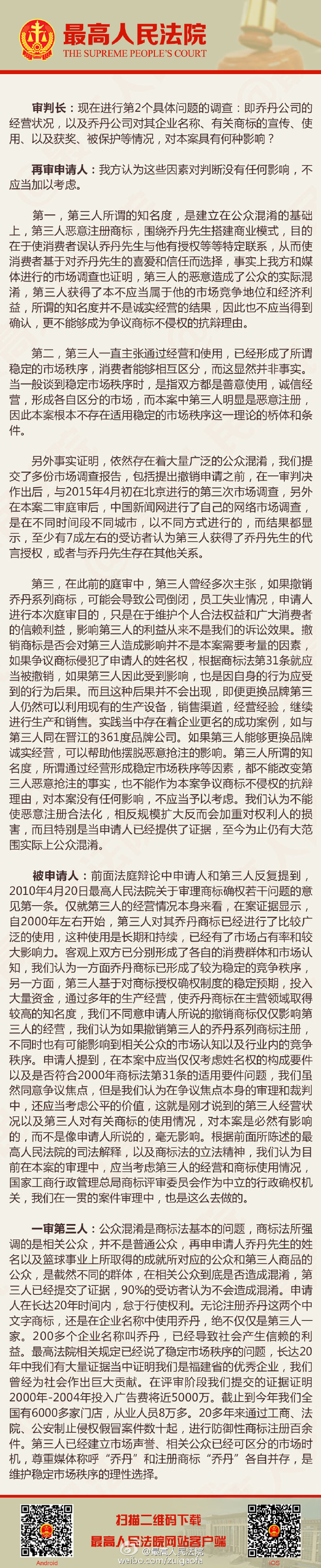 第四点,本案当中作为人名形式的乔丹和作为商业符号形式的乔丹完全是可以并存的,允许这两者并存既是过往20年来的社会实践,也是本案可以考虑的一个理性的选择。