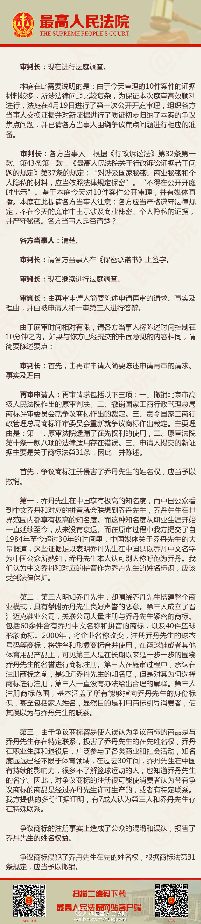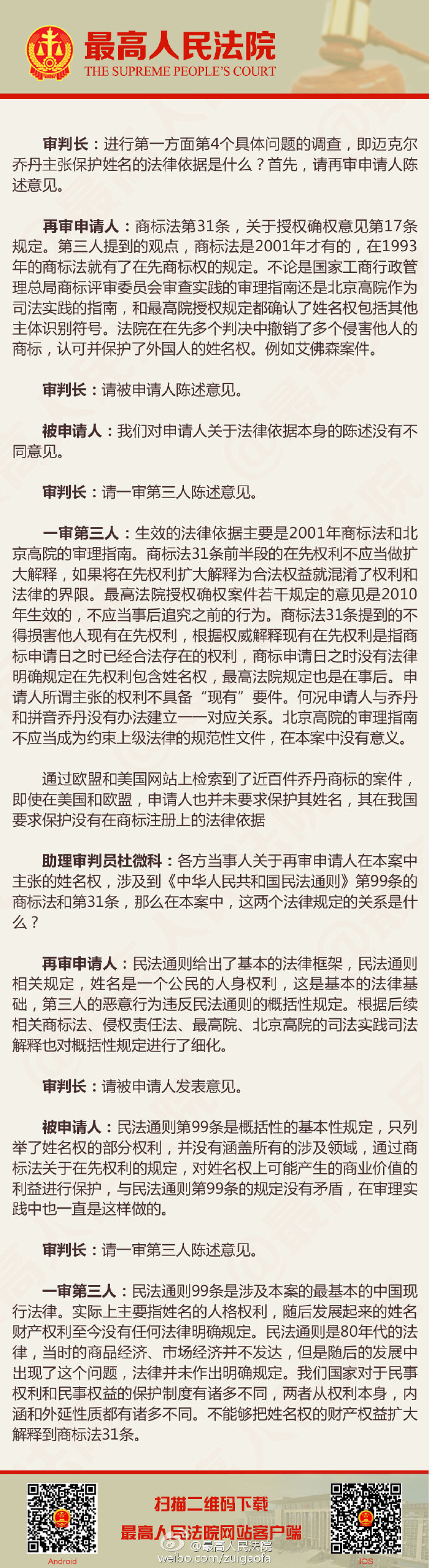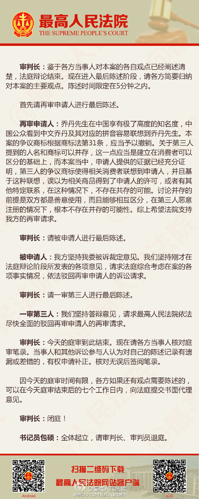 (庭审记录附文后,图片来源于最高人民法院微博)