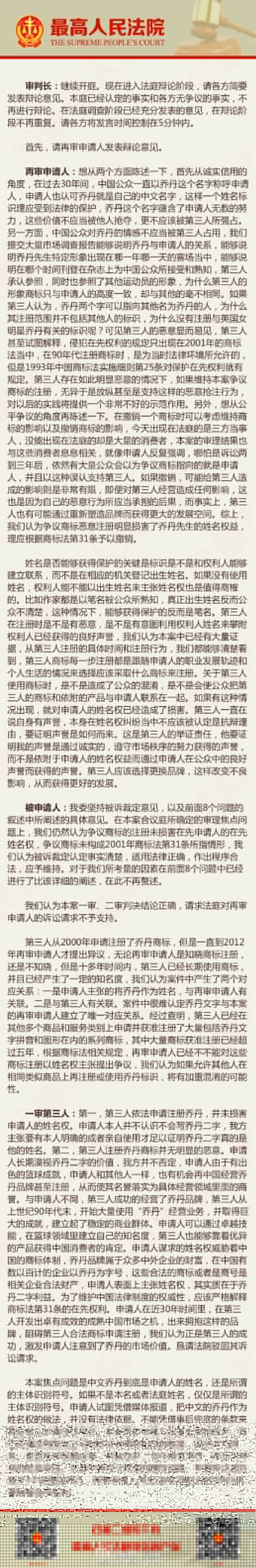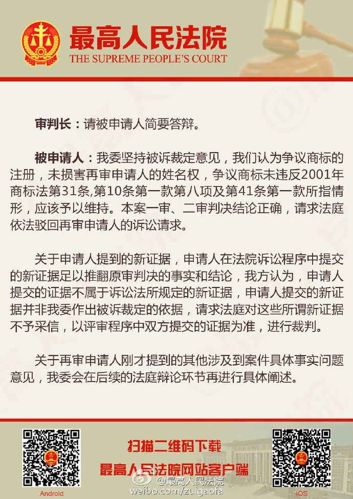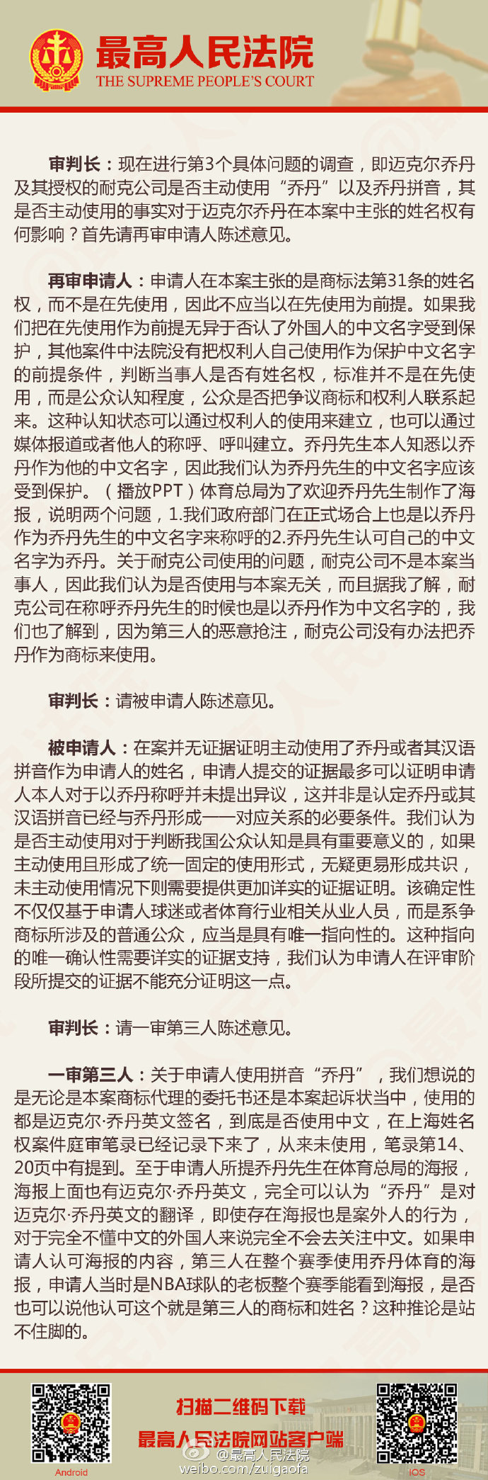(庭审记录附文后,图片来源于最高人民法院微博)