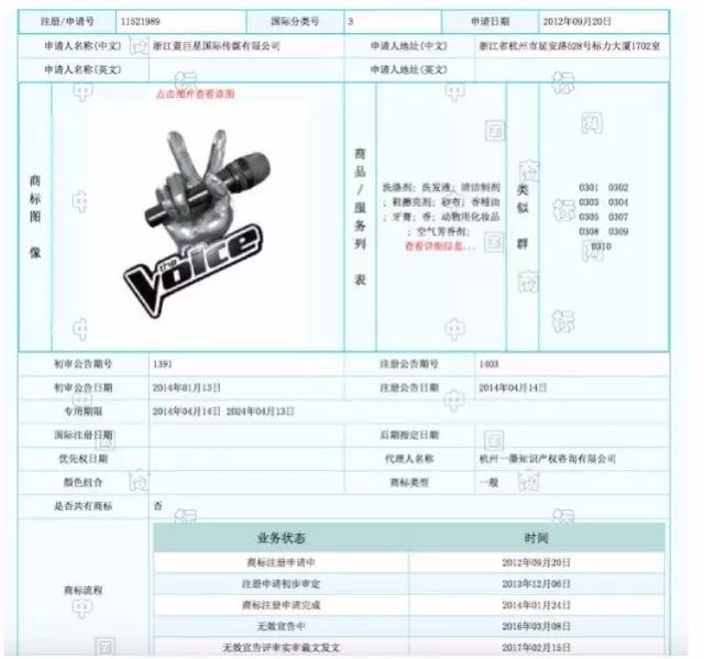然而,有媒体随后曝光,浙江卫视关联公司浙江蓝巨星国际传媒有限公司注册的“蓝巨星好声音”等26个跟“好声音”有关的商标因“以其他不正当手段取得注册”已被国家工商行政管理总局商标评审委员会陆续作出无效宣告。