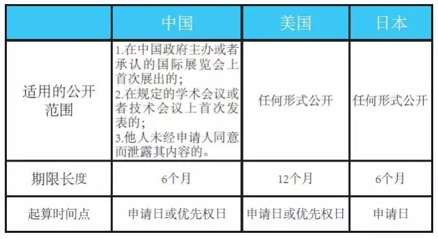 目前,世界各国有关宽限期的规定各有不同,其区别主要体现在宽限时长和适用范围上,时长主要有两种,即6个月和12月,在适用范围上,TPP主要国家--美国的范围最宽,包括任何人进行的发表、公开使用等公开行为。我国及许多欧洲国家所适用的范围则相对较窄。日本、俄罗斯及多数非洲和拉丁美洲国家,将该范围限于发明人公开及源于发明人的公开行为。
