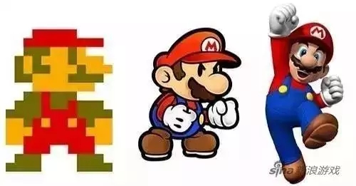 由于早期红白机时代的游戏分辨率较低,所以最早期的游戏角色多为像素化设计,如1985年任天堂公司的《超级马里奥兄弟》游戏。随着显像技术的提高,最早像素化的“马里奥”也开始更加圆润、细节更加丰富,甚至后期立体化。然而,就在高清化盛行的今天,仍然有一些游戏反其道而行之。