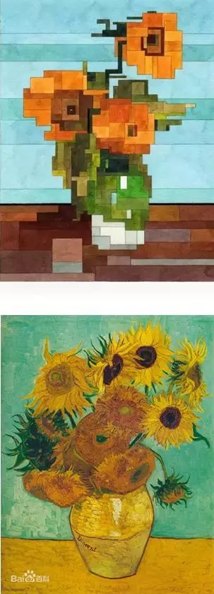 都是向日葵,上面像素画与下面梵高的画作构成“复制侵权”或“改编吗?
