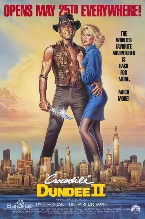 电影《鳄鱼邓迪》(crocodile dundee)在1986年首映时大受欢迎,票房高达3.6亿,并使主演、编剧霍根(Paul Hogan)赢得了当年的金球奖最佳男演员。而两年后推出的《鳄鱼邓迪II》也在全球赚回2.5亿的票房?!饿愕说稀吩诎拇罄谴聪碌钠狈孔罡呃芳锹?#xff0c;直到《泰坦尼克号》登陆澳洲才被打破。