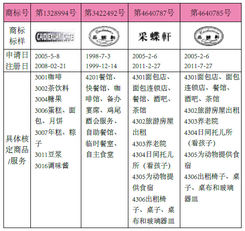 2002年5月15日,合肥采蝶轩公司向商标局申请第3176274号“采蝶轩”商标,并于2003年11月18日获准注册,指定在广告、推销等服务上使用。
