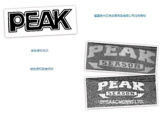 泉州匹克公司是注册商标“PEAK”的权利人。2005年9月,“PEAK”牌旅游鞋被授予“中国名牌产品”称号。2009年4月,“PEAK”商标在运动鞋上被国家商标局认定为驰名商标。
