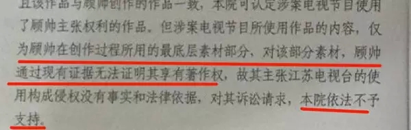 “最让我气愤的是江苏卫视“无所谓”的态度,从不回应抄袭到打算拿几千块钱私了,江苏卫视拒不道歉惹怒了我“,顾帅表示他会继续上诉。日前,顾帅发微博称已经提起上诉。