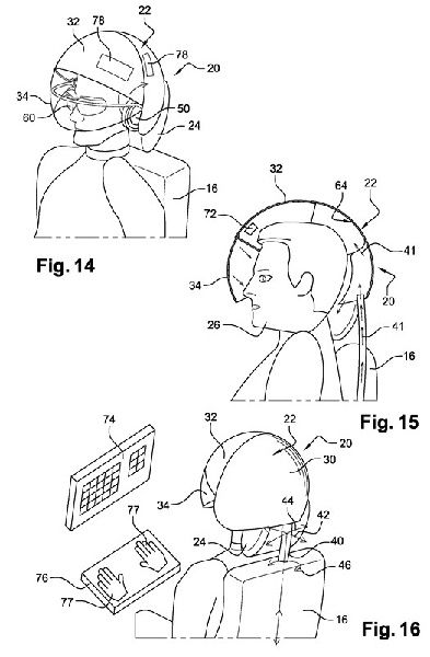 ??????? 据报道,飞机制造商空中客车公司现已为其一款头盔申请了美国专利,专利号为8814266B2。这种头盔类似于宇航员头盔,采用全包裹式、多感官设计,可以剥夺乘客的感官感受、提供虚拟实景。这项头盔发明的目的就在于提高乘客的舒适度。该头盔还包括一个支撑,通过支撑将头盔固定在座椅上。头盔的位置可以根据个人情况调节。