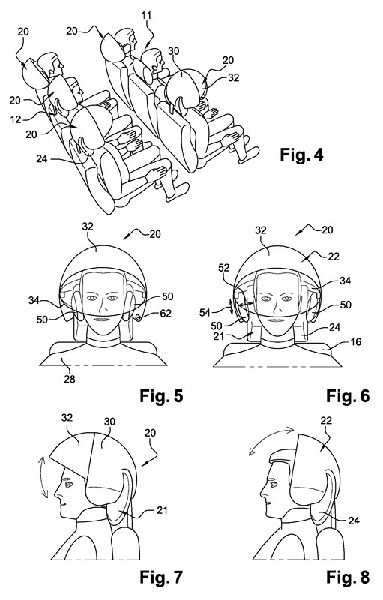 ??????? 这项头盔发明的目的就在于提高乘客的舒适度。该头盔还包括一个支撑,通过支撑将头盔固定在座椅上。头盔的位置可以根据个人情况调节。另外头盔上还配有可移动的耳机。
