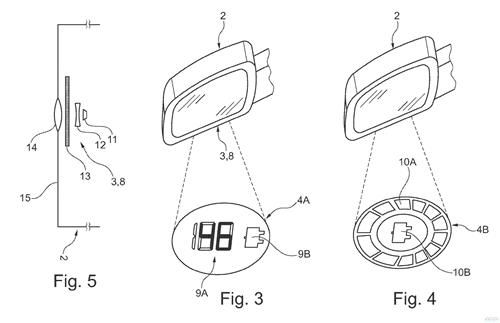 ??????? 根据福特提交的专利文件,位于外后视镜处的水坑灯可以将电动车电池充电状态信息投射到地面上,车主无需进入车内,便可直接查看车辆是否已完成充电。?
