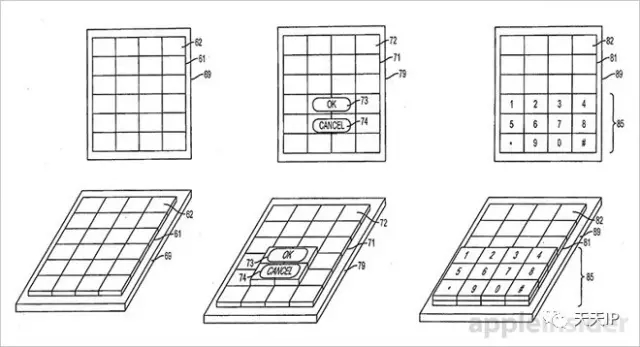 这项专利特别提到,像iPhone屏幕这样的用户界面,通过在屏幕下方整合能推或拉动可变形表面的机电元件,可提供不同的触感。