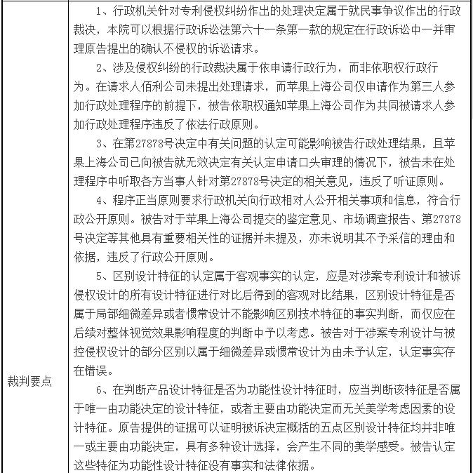 第三人佰利公司述称:被诉决定认定事实清楚,适用法律正确,审查结论正确。第一,关于程序问题,虽然佰利公司在提出行政诉讼时的被请求人未包括苹果上海公司,但在行政程序中发现被控侵权产品上印有苹果上海公司的相关标识,故其应作为被请求人;第二、关于实体问题,首先,被控侵权产品侧面按键、正面按键作为功能性设计,不具有显著视觉影响力,苹果上海公司在相关无效程序中亦认可该点;其次,苹果上海公司提出的各项区别设计特征均对整体视觉效果不具有显著的影响,属于细微差别。故被诉侵权设计落入涉案专利的专利权?;し段АW凵?#xff0c;佰利公司请求本院依法驳回本案原告的诉讼请求。?