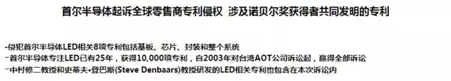 根据该公司官网信息显示,首尔半导体最常被侵犯的LED相关专利主要包括基板、芯片、封装和整个系统等。其中,还涉及到诺贝尔奖获得者共同发明的产品专利。