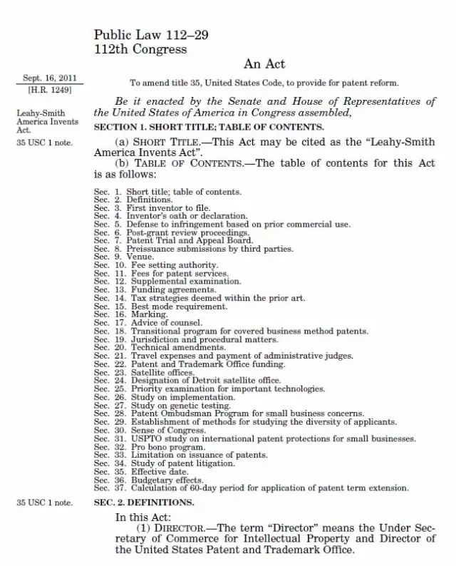 2011年,奥巴马签署《美国发明法案》(AIA),根据“申请在先”而不是“在先发明”原则授予专利。