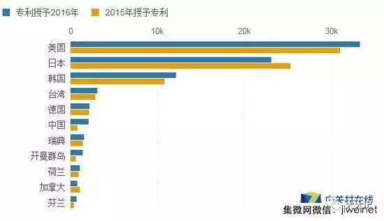 2016年大型专利获得者包括诺基亚,其获得了695项专利,与去年相比增长了74%; 华为技术,其专利数量增长50%,达到1202项专利; 亚马孙Amazon,获得了1662项专利,收益率为46%。