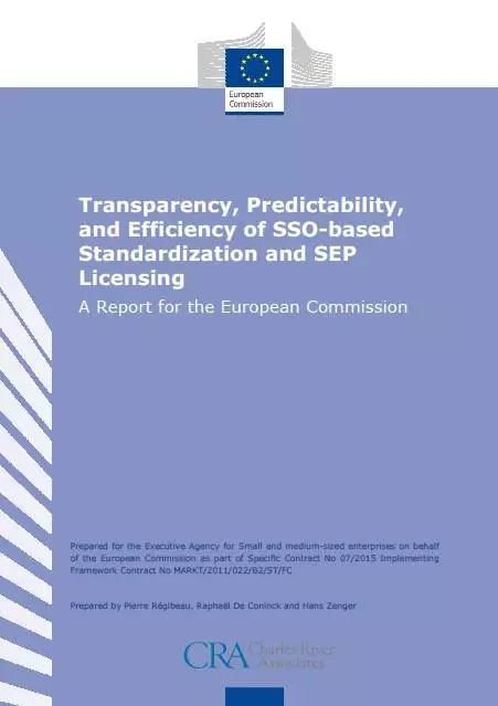 欧盟委员会公布了评估与标准必要专利(SEP)和标准化过程相关的问题和解决方案——《基于SSO标准化和SEP许可的透明度、可预测性和效率的研究报告》。报告主要评估与标准化过程相关的问题,考虑缓解这些问题的政策,提出并评估实际解决方案,以期促进有效的标准化进程。除了传统的标准密集型行业,报告还评估了物联网行业的标准化,其出现使得确保标准制定和SEP许可过程的效率更为重要。