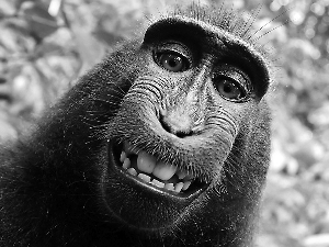 这只印度尼西亚猴子4年前拾到斯莱特的照相机,无意摆弄间拍下了几张咧嘴大笑的滑稽自拍照,后来被斯莱特出书公布。如果原告胜诉,这将是史上首次有动物被判定拥有知识产权。