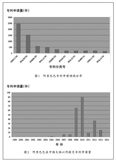 ??????? 笔者通过在中国专利文摘数据库(CNABS)中进行专利文献检索,对阿里巴巴专利申请分布进行统计,检索数据截至2014年12月31日。?