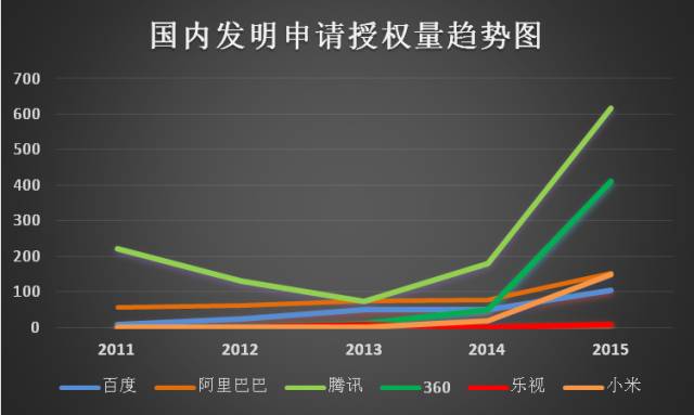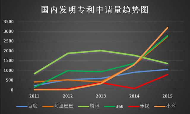近年来在进军海外市场过程中频频被诉,屡次陷入智能手机专利战不能全身而退的小米公司正不断加大专利保护力度。该公司在2013-2015年的申请量增长势头最为显著,2015年的发明专利申请量跃居六家大型互联网公司之首。