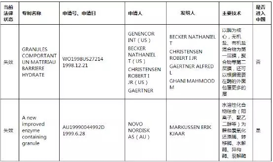 表1微囊化蛋白酶技术专利信息